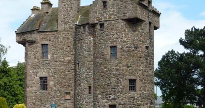 John Strachan and Claypotts, succeeded his father and was served heir to him in the middle-part of the lands of Skryne on 15 December 1599.[11] He married Agnes Erskine, (she was widow of Alexander Halkertoun) and with her consent and that of his mother, Elizabeth Maxwell, he disponed his lands of Claypotts to William Graham of Baldowrie by charter dated 30 and 31 May 1601.[12]